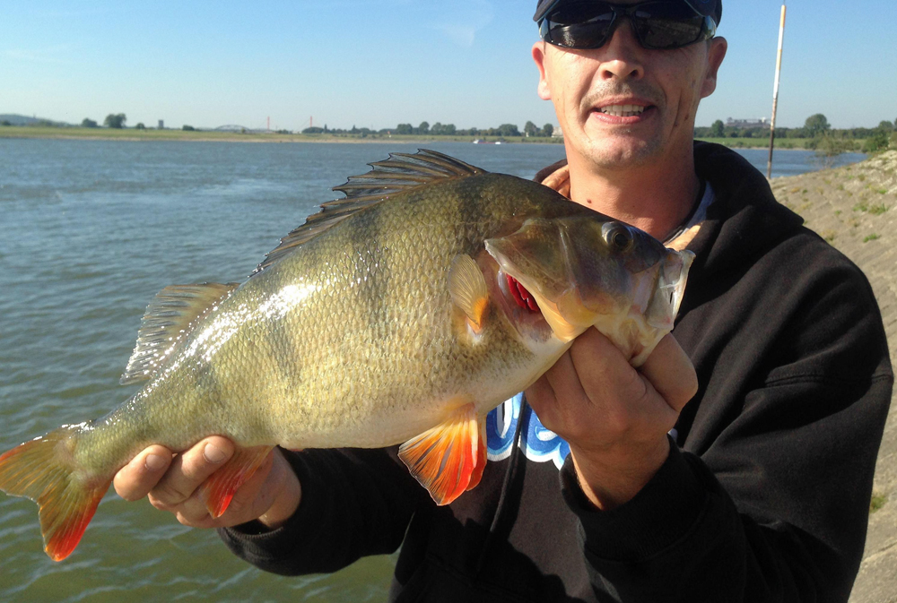 Der Unterrhein bei Duisburg ist den meisten Anglern als hervorragendes Zanderrevier bekannt. Immer wieder macht dieser Gewässerabschnitt aber auch mit dem Fang kapitaler Barsche von sich Reden. Mario Wegener weiß, dass sich diese starken Stachelritter dort tummeln und versuchte gezielt einen davon zu erbeuten. Der Angler bot einen tief laufenden Cormoran-Wobbler an und erhielt darauf den erhofften Biss. Nachdem Mario Wegener während des Drills eher an einen mittleren Hecht oder Zander dachte, kam letztlich doch ein riesiger Barsch zum Vorschein. Der Fisch hatte eine sagenhafte Länge von 52 Zentimetern und erinnerte mit seiner hochrückigen Körperform an einen Karpfen.