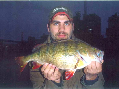 Eigentlich war Andreas Kraus am frühen Nachmittag an den Rhein gefahren, um dort den Zandern nachzustellen. Doch die schienen am 16. November keinen Appetit zu haben. Nach einigen Stunden Angeln kam dann ein erster Biss auf seinen extrem auffälligen Gummifisch (Electric Chicken von Bass Assassin). Zutage kam ein 38 Zentimeter langer Barsch. Ein toller Fang, doch es sollte noch dicker kommen. Gegen 16.45 Uhr schnappte sich ein weiterer Fisch den Gummifisch. Knapp fünf Minuten später lag ein weiterer Barsch in Kraus´Kescher ein wahres Barschmonster von 53 Zentimeter Länge. Das spätere Wiegen ergab eine Gewicht von 4 Pfund 100 Gramm.