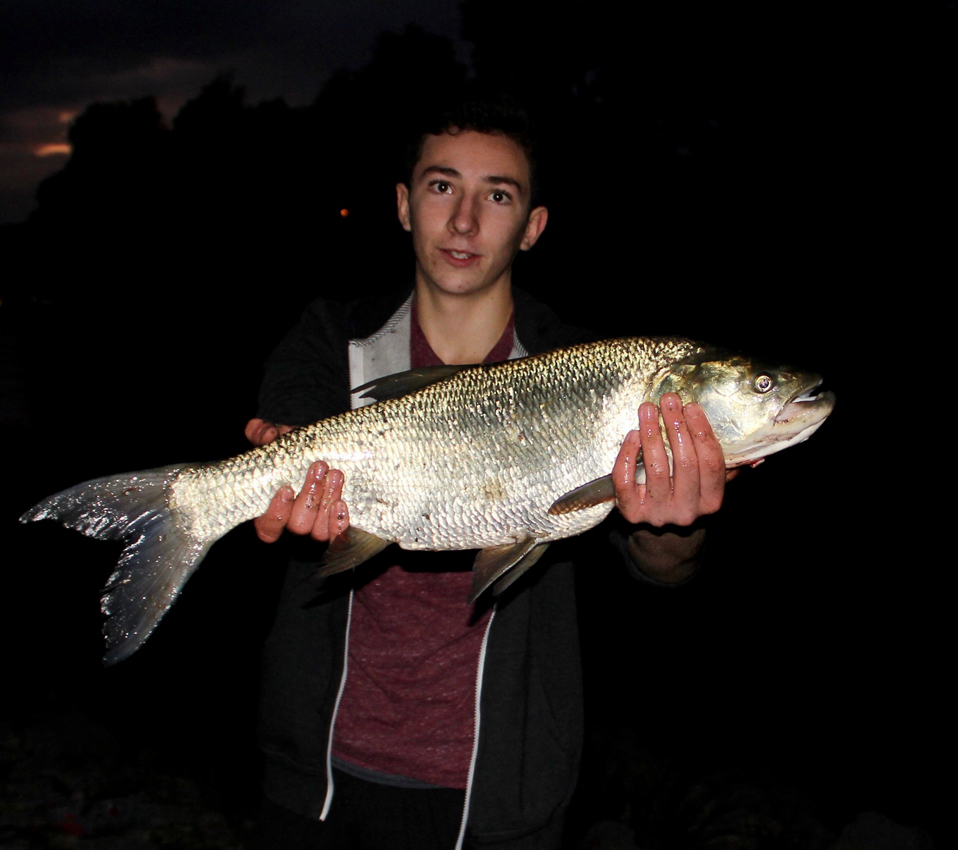 Rhein-Häfen gelten allgemein als gute Barschreviere. Doch am 19. Oktober ließ sich in den Häfen um Lorch kein Barsch fangen. Also wechselten Jesko und Kollege zur Hafenausfahrt, um dort noch ein paar Würfe zu machen. Mittlerweile war es dunkel geworden, doch an der Strömungskante zum Hafen war ein großer Fisch mehrere Male am rauben. Daher tauschte Jesko seinen kleinen Gummifisch gegen einen 10 Zentimeter langen Wobbler aus. Gleich beim ersten Wurf, gab es einen enormen Schlag in der Rute, und der Fisch zog sofort in die Strömung. Mit der feinen Barschgerte gestaltete sich der Drill recht schwierig und so dauerte es einige Zeit, bis die beiden Angler einen großen Rapfen ausmachen konnten. Nach ein paar weiteren Fluchten konnte der Fisch dann gekeschert werden. Er hatte eine Länge von 71 Zentimetern.