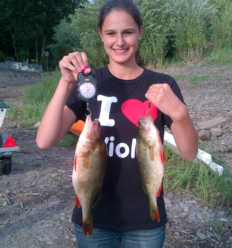 V. Basile Viola Basile präsentiert die beiden größten Barsche ihrer erfolgreichen Edersee-Tour.