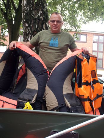 Jürgen Tews vermietet in Hamburg Belly- und Bananaboote für Angler. A. Pawlitzki