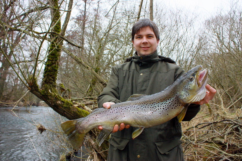 Maximilian Just mit seiner gewaltigen Bachforelle aus der Werra. privat