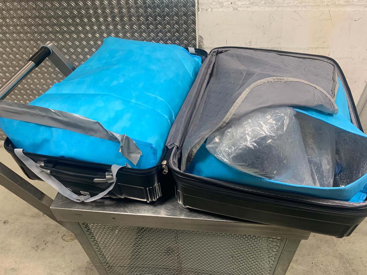 Dieser Koffer des Reisenden war vollgestopft mit Plastiktüten, in den sich die Jungaale befanden.