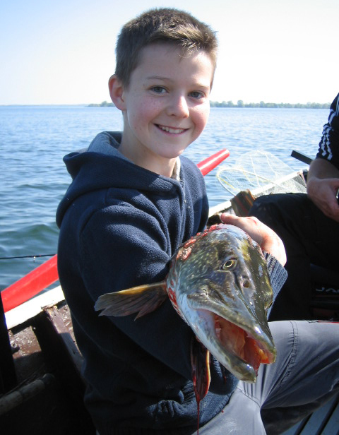 Die dicksten Fänge gelingen meist dann, wenn man damit nicht rechnet. Diese Erfahrung durfte auch der 12-jährige Vito Stefanutti bereits machen. Am 1.Mai ging es für ihn per Boot auf den Chiemsee. Dieses Revier verfügt über ein hervorragendes Renkenvorkommen, nur war an jenem Tag davon leider wenig zu spüren. Es gingen nur Renken aus der Kinderstube an den Haken. Die mussten natürlich zurück ins Wasser. Die Chance auf einen dicken Fang schien schon verspielt, als sich der Jungangler mit letzter Hoffnung entschied, den legendären Effzett-Blinker beim Schleppfischen anzubieten. Doch ganz so weit kam es garnicht erst. Vito warf den Blinker aus, aber noch bevor er beginnen konnte, das Boot in Bewegung zu setzen, ging ein gewaltiger Ruck durch die Rute. Danach passierte zunächst überhaupt nichts. Verdammt, ein Hänger! Aber nix da: Mit einem Mal kam Bewegung in den vermeintlichen Grundkontakt. Die Rollenbremse sang ihr Lied und Vito hatte ordentlich zu drillen. Kein Zweifel: Ein kapitaler Räuber hatte den Blinker direkt nach dem Auswurf gepackt. Der Jungangler gab sich keine Blöße und zwang den Fisch in Bootsnähe. Es handelt sich um einen stattlichen Hecht. Dann das Horror-Szenario: Der Kescher war für diesen Brocken viel zu klein. Vito nahm allen Mut zusammen und landete den Esox per Hand. Die Messung ergab satte 110 Zentimeter.