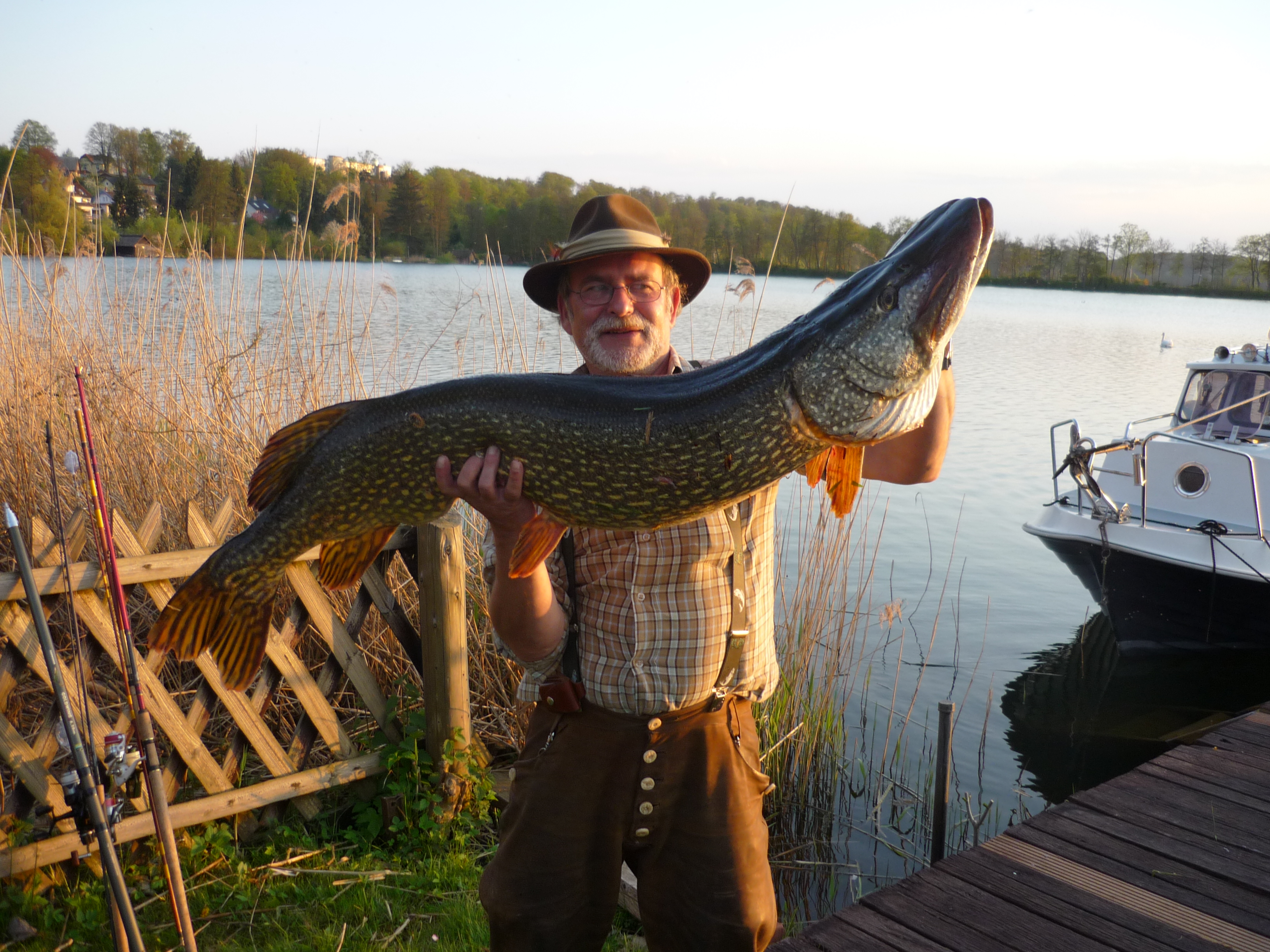 Den Start in die Hechtsaison 2012 brachte für ANGELWOCHE-Leser Dirk Bruweleit den Esox des Lebens. Dabei setzte er auf eine Angelmethode der alten Schule. Statt mit eines High-Tec-Wobblers bot der Angler am Stadtsee Ratzeburg ein totes Rotauge an der Stellfischrute an. Keine schlechte Wahl um einem kapitalen Fisch zu fangen, der in seinem Leben schon so manchen Kunstköder gesehen hat. Die Rechnung ging auf. Gegen 18 Uhr ging die Pose von Dirk Bruweleit auf Tauchstation. Dem Anhieb folgte ein hochspannender Drill, der 20 Minuten dauerte. An dessen Ende stand die Landung eines riesigen Hechtes. Bei 129 Zentimeter Länge zeigte die Waage satte 18 Kilo an. Dies war der zweitgrößte Hecht, der jemals im Stadtsee Ratzeburg erbeutet wurde.