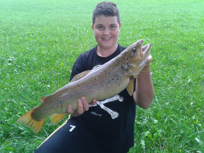Marcel Groß aus dem österreichischen Höchst angelte in Oberösterreich in einem Privatsee. Seine Posenmontage war mit einem 4er Haken bestückt. Und den hatte er mit einer Grundel beködert. Als die Pose plötzlich abtauchte, setzte Marcel den Anhieb. Im Drill hatte er eine wunderhübsch gezeichnete Bachforelle und zwar keine kleine. Als er den Fisch gelandet hatte, zeigte das Maßband eine Länge von 58 Zentimeter. Die Bachforelle wog genau 4 Pfund 47 Gramm.