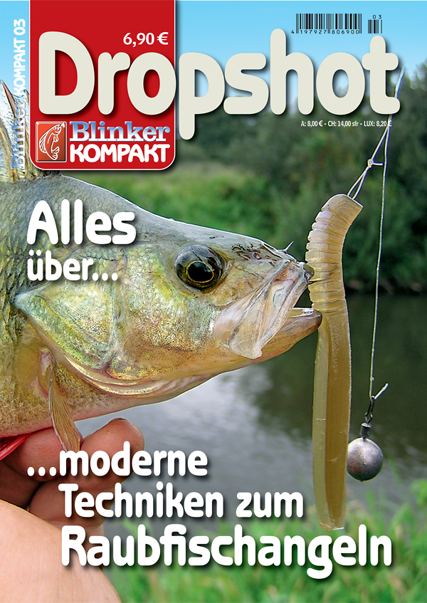 Dropshot-Fishing, das Angeln mit Texas- und Carolina-Rig, Bottom-Bouncing, Weedless- und Splitshot-Fishing sowie Softjerken diese Begriffe klingen für viele deutsche Angler noch immer wie böhmische Dörfer. Doch damit ist jetzt Schluss! Hinter jeder dieser Methoden steht eine äußerst fängige amerikanische Spinnangel-Technik, die auch unsere einheimischen Räuber schwach werden lässt. Wir bringen Licht ins Dunkel, denn seit kurzem ist es wieder erhältlich das Dropshot-Sonderheft aus der Reihe BLINKER-Kompakt. Diesmal dreht sich alles um moderne Techniken zum Raubfischangeln. Abgeschaut von amerikanischen Profi-Anglern daher auch gespickt mit vielen Fachausdrücken made in USA und den heimischen Verhältnissen angepasst, lassen sich mit diesen neuen Methoden Barsche, Zander und Hechte überlisten. Selbst im Meer können gefräßige Räuber mit den neuen Kunstködern und Montagen raffiniert und effektiv beangelt werden. Das 84 Seiten starke Kompaktheft Dropshot Alles über moderne Techniken zum Raubfischangeln gibt es ab sofort wieder für 6,90 Euro im Zeitschriftenhandel, im Angelgeräte-Fachhandel und im BLINKER-Onlineshop.