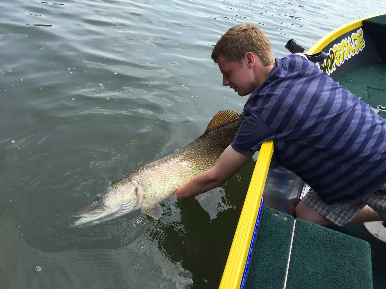 Massimo Stauder mit dem größten Hecht seines Hecht-Quintetts von Fischen über 110 Zentimeter. M. Stauder