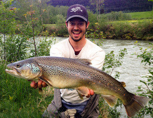 Andreas Gutbrod servierte seine Fliege in der Salzach im Bräurup-Revier (www.braurup.at) sehr gekonnt einer Bachforelle von sage und schreibe 71 cm und 5,65 kg. Er gewann mit ihr die Wertung der Fliegenfischer. Zitat des Fängers: „Durch die starke Strömung und den hohen Wasserstand der Salzach zu dem Zeitpunkt des Fanges, konnte ich dem Fisch nicht genügend entgegensetzen und bin ca. 70 m flussab über Stock und Stein hinterher bis ich langsam Schnur gewinnen konnte und das Backing wieder auf die Rolle spulen konnte. Ich angelte übrigens mit einer Fliegenrute der Klasse 5/6 und hatte eine Jigfliege montiert. Ganz herzlich möchte ich mich noch beim Fischerteam des Hotels Bräurup und im Speziellen bei Michi Nothdurfter bedanken, die mir bei der Auswahl des Köders und der Stelle behilflich waren!“
