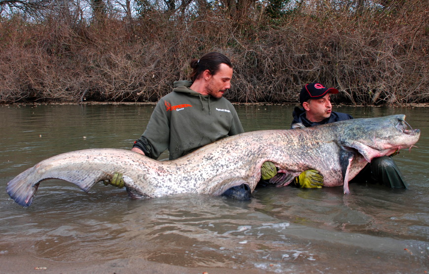 Régis Fakoury, Mitglied im Team Black-Cat Frankreich, hat einen riesigen Wels an der kleine Rhône gefangen: Der fantastische Fisch von 2,50 m Länge wog zirka 100 Kilogramm. Régis brauchte all seine Erfahrung aus der jahrelangen Praxis in der Jagd auf Rekordfische, um das Monster nach 45 Minuten endlich landen zu können. Obwohl er sich seit Monaten vornehmlich der Fischerei auf Wolfbarsche und Schwarzbarsche mit Spinnangeltechniken verschrieben und praktisch die gesamte letzte Saison nicht auf Wels geangelt hatte, brauchte er letztlich nur einen Versuch, um den ersehnten kapitalen Wels zu fangen. Verführt hat er den Riesen mit einem Köderfisch, den er mittels einer Reißleinen-Montage anbot. Bezwungen hat er den Fisch mit einer Black Cat Buster Rute und einer Fin Nor Sportfisher Rolle in der Größe 80.