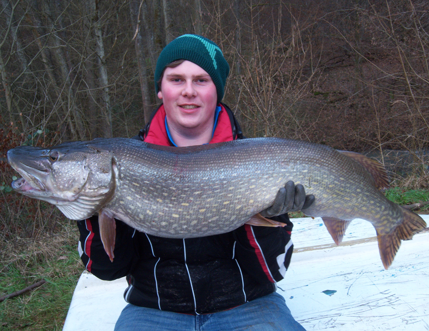 Am 11. Januar zog es Christoph Frank und seinen Vater an ihren Vereinssee, in dem sich große Hechte befinden sollten. Christoph hatte einen Wobbler am Ende seines Stahlvorfachs befestigt und warf diesen ins Wasser. Schon nach dem vierten Wurf stieg ein großer Fisch ein, der einen gewaltigen Drill lieferte. Doch mit Hilfe seines Vaters gelang schließlich die Landung. Die beiden Angler konnten einen kurzen aber enorm kompakten Hecht von 121 Zentimeter Länge und einem Gewicht von 32 Pfund 340 Gramm aus dem Wasser ziehen. Der Fisch belegt in der Hitparade 2015 den ersten Platz und wird sich wohl noch einige Monate dort behaupten können.