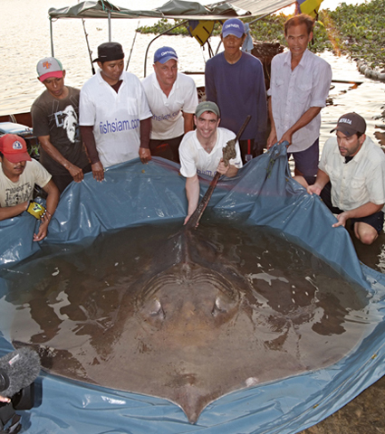 Den wahrscheinlich größten jemals gefangenen Süßwasserfisch landete ein Anglerteam aus Thailand. Nach Schätzung von Fischern und Wissenschaftlern brachte der riesige Stachelrochen mehr als 265 Kilogramm auf die Waage.
