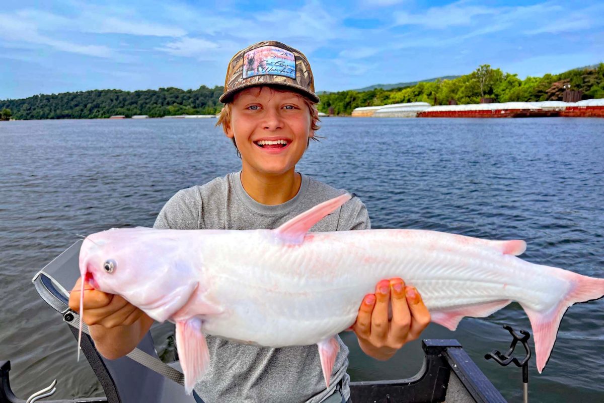 Der Katzenwels, den der 15 Jahre alte Edwards Tarumianz Ende Juni fangen konnte, dürfte der Fisch seines Lebens sein. Nicht wegen seiner Größe – sondern wegen seiner Färbung. Der Fisch, den der Jungangler aus dem US-Bundesstaat Tennessee fing, war ein weißer Wels.