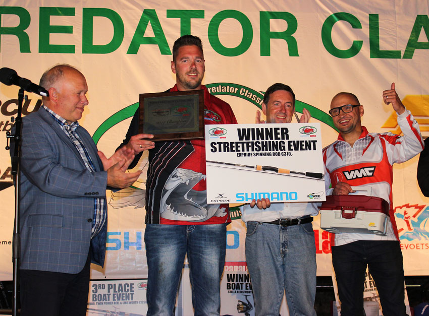 Der Deutsche Michael Bongers (2. von links) gewann den Streetfishing Contest. Das Foto zeigt seine Siegerehrung Chr. Wieneke