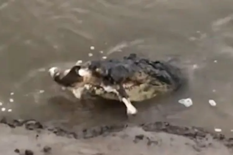 Angler Dan Johnson fing in Queensland, Australien fast einen Hai mit seiner Angel. Der Fisch lag schon am Ufer, aber dann kam auf einmal ein vier Meter langes Krokodil angeschwommen. MEHR