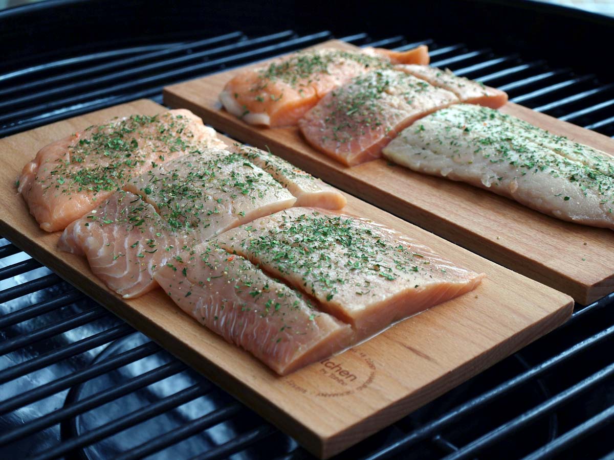 Die angefeuchteten Holzplanken verleihen den Filets aus dem Smoker-Grill eine ganz besondere Geschmacksnote.