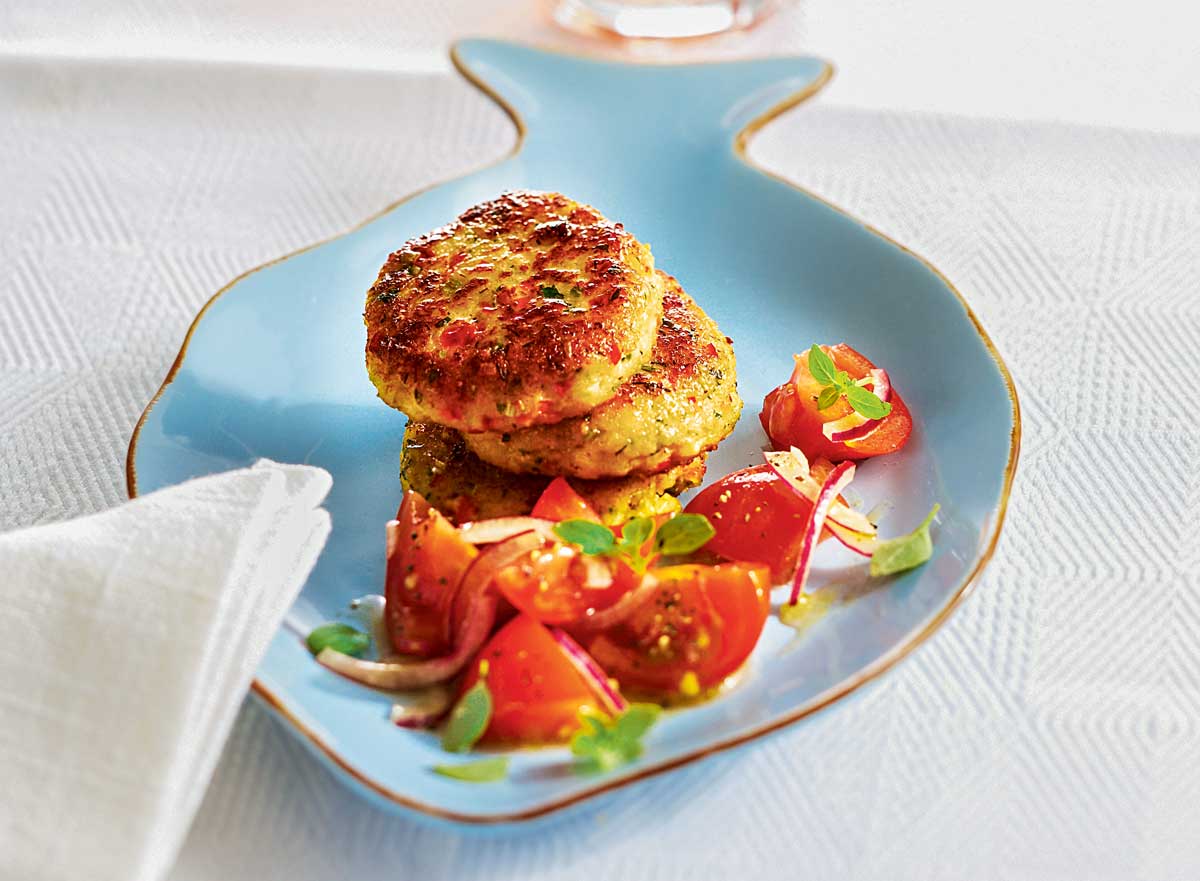 Die Beilage zu den leckeren Fischfrikadellen können auch je nach Geschmack angepasst werden. Egal ob z.B. Tomaten- oder Weißkrautsalat – hier schmeckt einfach alles. Foto: BLINKER/Teubner
