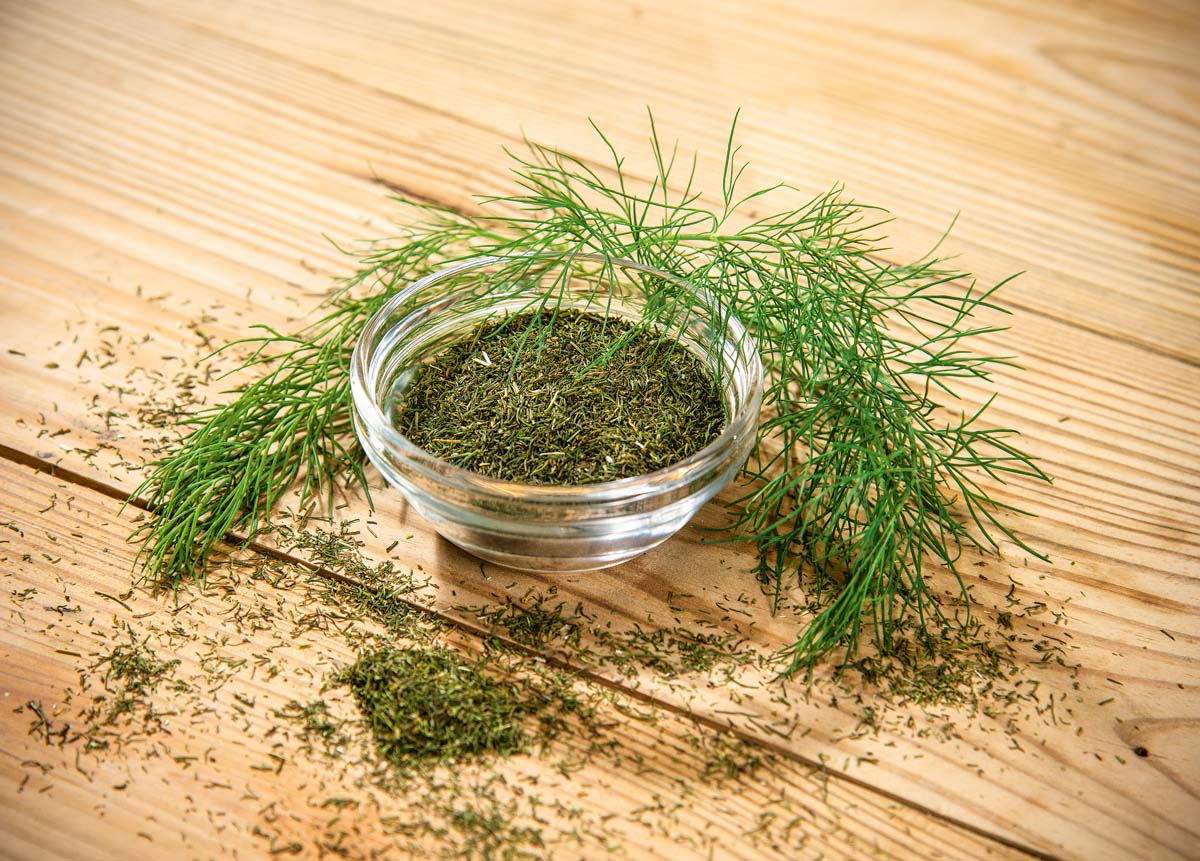 Eines der bekanntesten Fischkräuter – ideal für eine Beize aus Salz und Zucker, in Fischsalaten. Eine Dillsauce wird häufig zu gebratenem und gedünstetem Fisch gereicht. Auch Fischsuppen und Heringsmarinaden bekommen durch Dill ihren besonderen Geschmack.