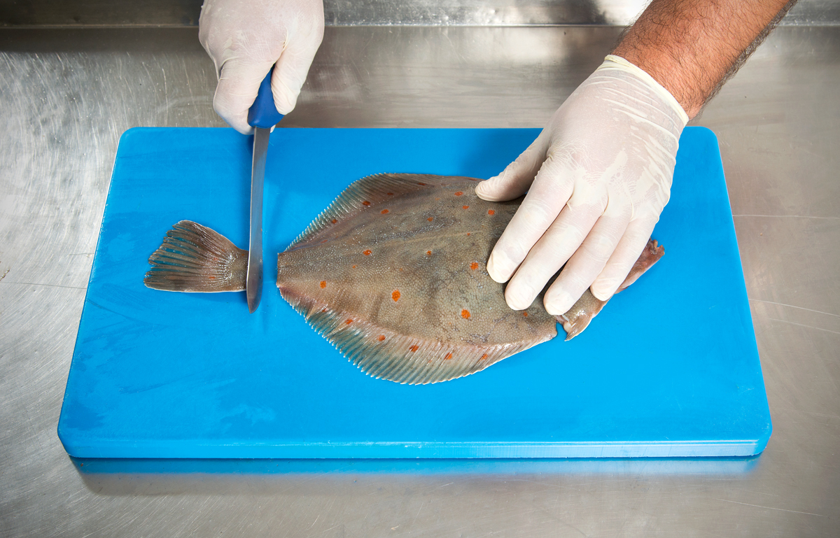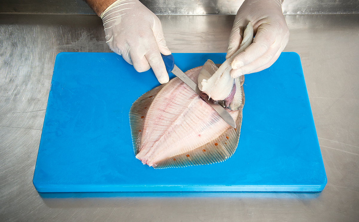 - Man verkantet das Messer auf der Mittelgräte und trennt das Filet bis zum Flossenansatz heraus.