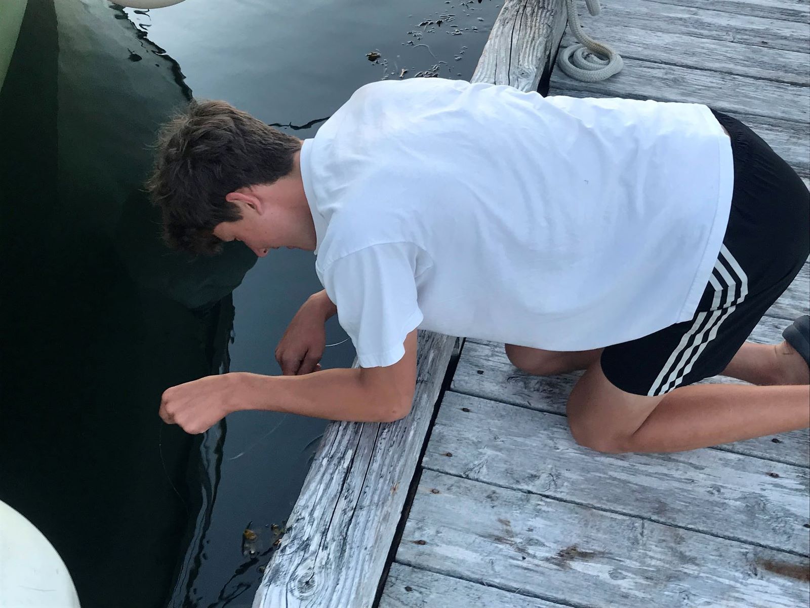 Auf dem Heimweg durchbrach dann ploetzlich ein Buckelwal nur 30m neben dem Boot die Oberflaeche und tauchte dann mit der Schwanzflosse nach oben ab. Emma war begeistert. Auch die Robben an der Marina entzueckten sie. Ich glaube, dass war nicht das letzte Mal, dass sie zum Angeln mitgekommen ist. Uebrigens hatte ich wieder nur eine maennliche Krabbe in der Falle – und die war 2mm zu klein. Das ist doch kein Zufall mehr!?