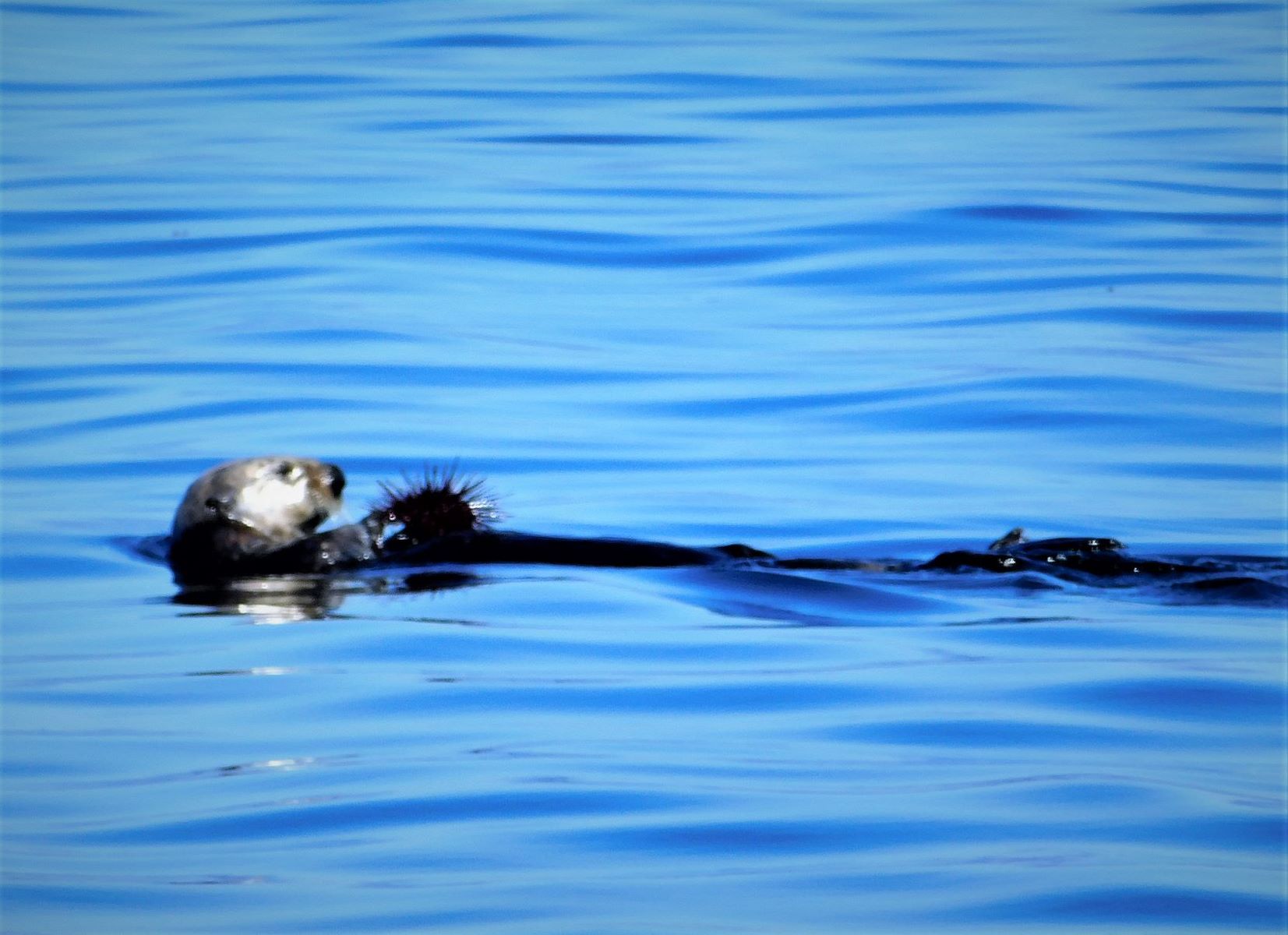 Waehrend Chris noch eine Weile am Anker blieb, drifteten wir noch ein paar Stellen ab. Aber beide Boote blieben ohne weiteren Erfolg. Aber es wurde uns nicht langweilig da wir staendig Wale nah oder fern beobachten konnten. Dann war es schon Zeit an die Heimfahrt zu denken. Fuer Chris’ Crew war das der letzte Tag heute. Sie fuhren mit ein paar schoenen Fischen nach Hause und vorallem schoenen Erinnerungen und Eindruecken von dieser Gegend hier. Auf dem Nachhauseweg kreuzte uns noch ein Schwarm von Delfinen die doch tatsaechlich unter dem fahrenden Boot durchhuschten. Kurz vor Mitchell Bay kamen wir auch noch an einem Seeotter vorbei der sich gerade ueber einen Seeigel hermachte. Wie man sowas ueberhaupt als Futter ansehen kann? Verrueckt und cool!
