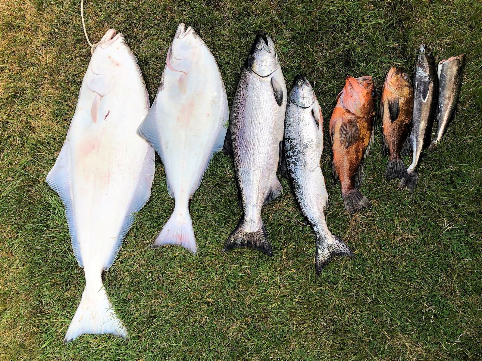 Endlich kam Alexander aus der Koje und ich hoffte, das die Chinookbeisszeit weiterging. Aber wie das so ist beim Angeln, es hoert so schnell auf wie es kam. Alex fing noch einen stattlichen Felsenbarsch den Dave fuer sich behielt. Und er fing einen sonst seltenen Fisch: einen kleinen Sablefish. Diese bis 1.5m lang werdenden Offshore Jaeger kriegt man hier an der Kueste nur sehr selten zu sehen und wenn dann nur in Miniformat. Der hier hatte wohl so 40 cm und da ich um seine Qualitaet geraeuchert wusste, behielt ich ihn einfach mal. Exotenfaenge waren eigentlich meines anderen Sohn’s Spezialitaet, aber Alex konnte es wohl auch. Eine Gruppe Orcas tauchte nicht weit weg von uns auf – die waren wohl auch auf der Suche nach den Lachsen. Oder waren es die robbenfressenden Transients? Man kann die beiden Arten als Laie nicht voneinander unterscheiden. Es war nun Mittag und wir beschlossen es mal auf Butt zu versuchen. Wir hatten alle eine angefuellte Lachsladung auf Eis. Chris schlug vor es nochmal auf der George Bank zu versuchen. Das war nur 10 Minuten Fahrt von hier. Wir stimmten zu.