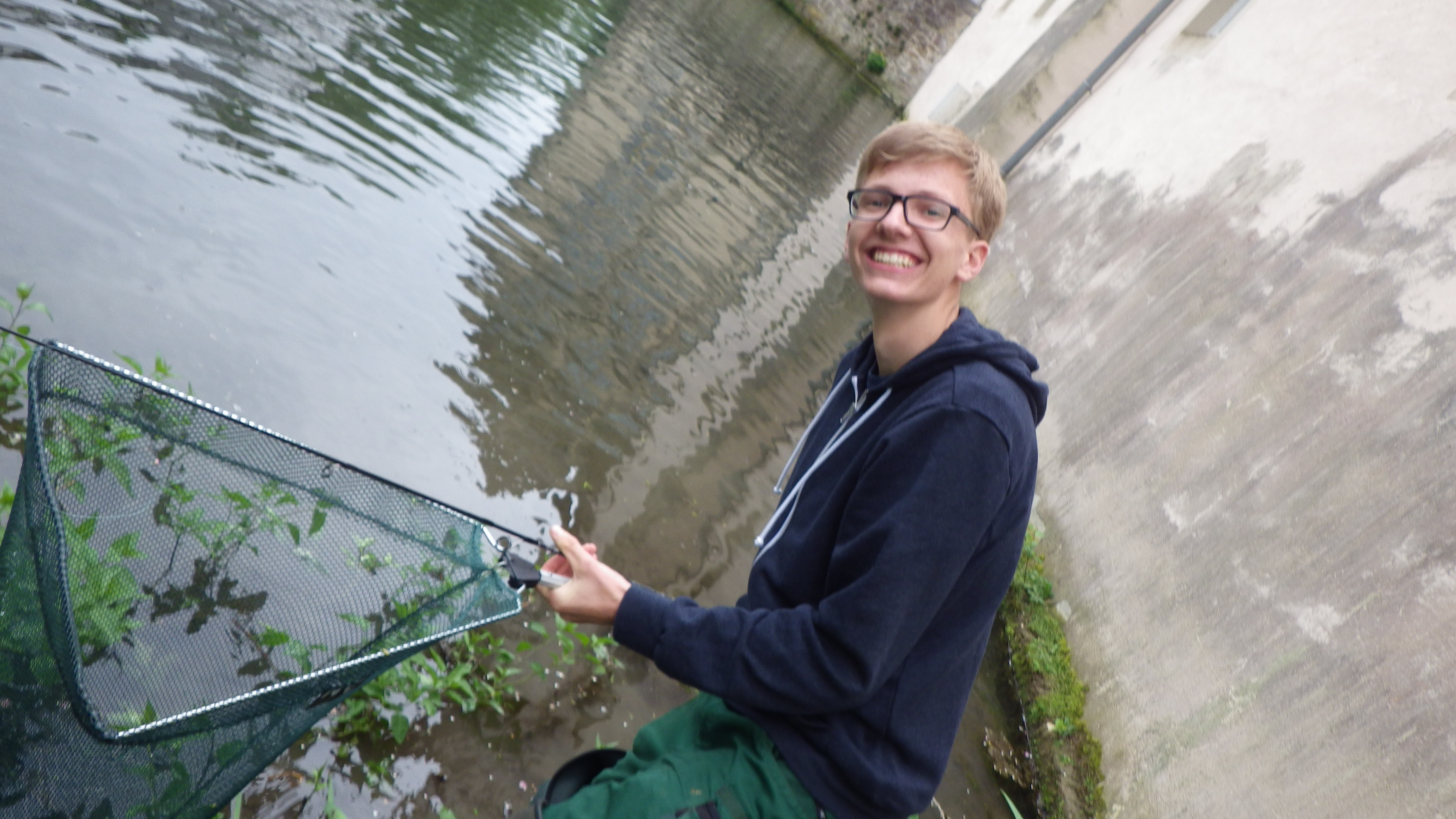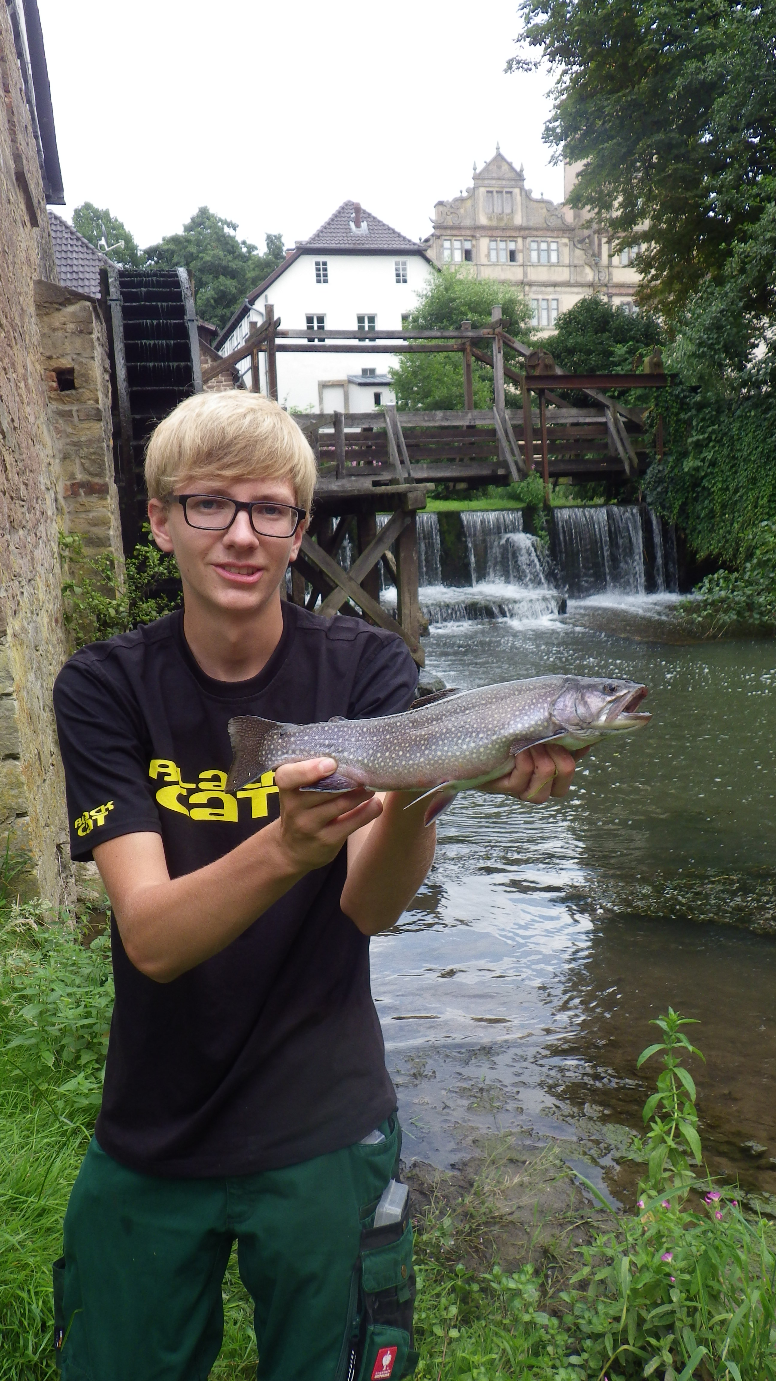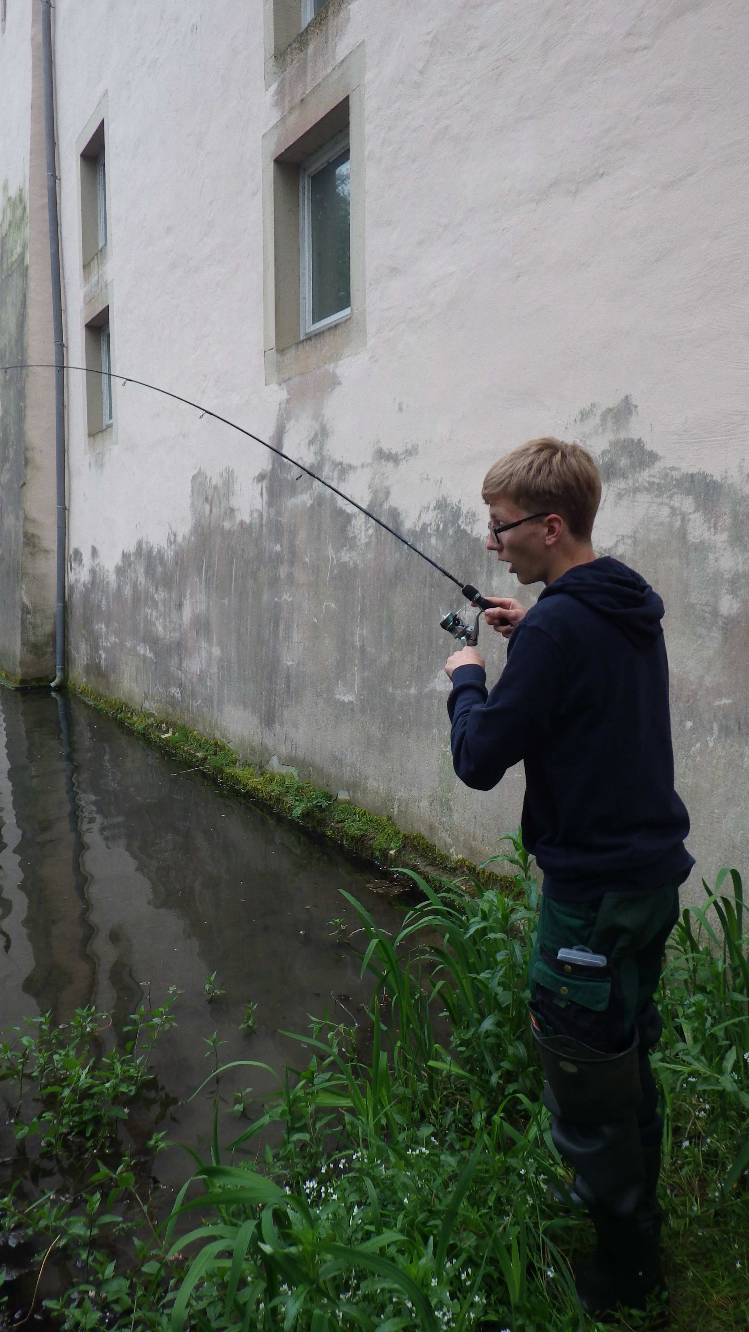 • Dienstag Mittag hat es mich wieder spontan mit Colin an die Bega verschlagen. Wir entschieden uns für den unteren Bereich um etwas Spaß mit den Barschen zu haben und vlt. auch mal einen der zickigen Döbel zu erwischen. Unser erster Spot war der große Kolk am Wasserrad, der mir dieses Jahr schon einige Überraschungen beschert hat. Der erste Barsch war wie immer schnell da und Colin setzte zu seinen nächsten Wurf in den ruhigen Bereich hinter der letzten Stufe, wo er einen guten Biss bekam, der sich kurz darauf als ca. 35cm langer Saibling herausstellen sollte.