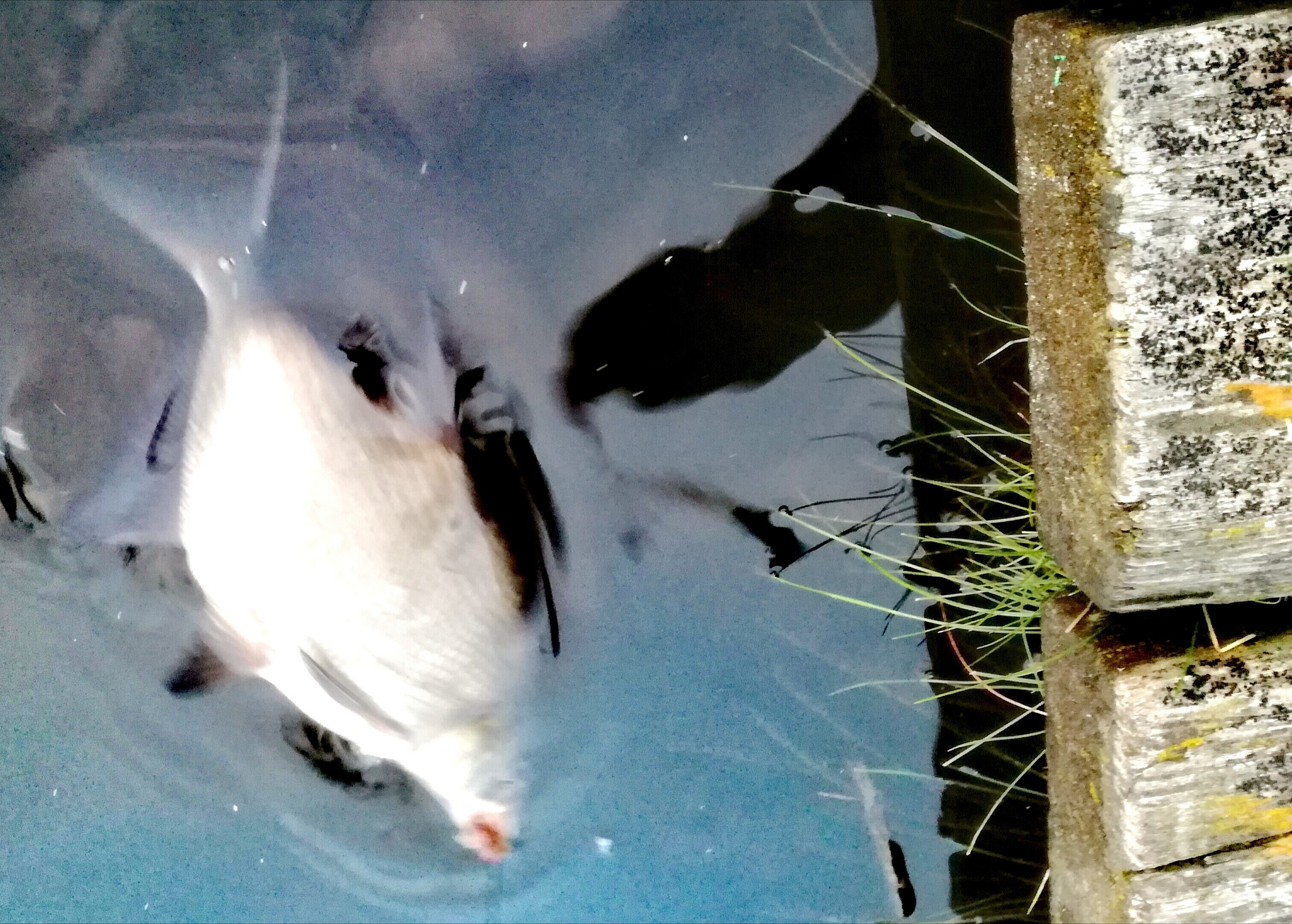 Petri dank. Iich frag mich woher das bei der schwanzflosse kommt. scheint n sauberer schnitt zu sein. was das wohl war?