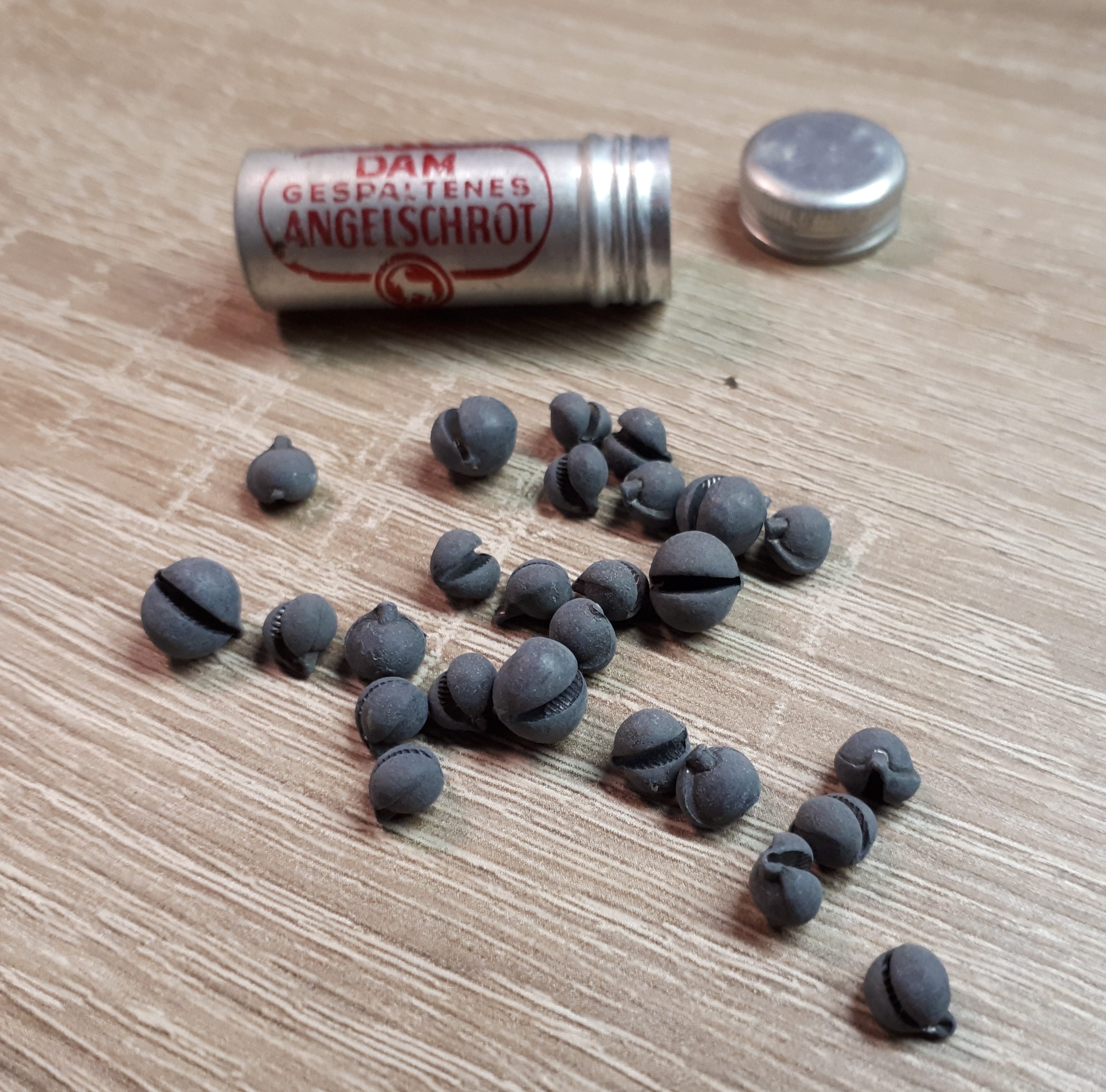 Ein kleines Dös`chen mit dem Original-Bleischrot von DAM.