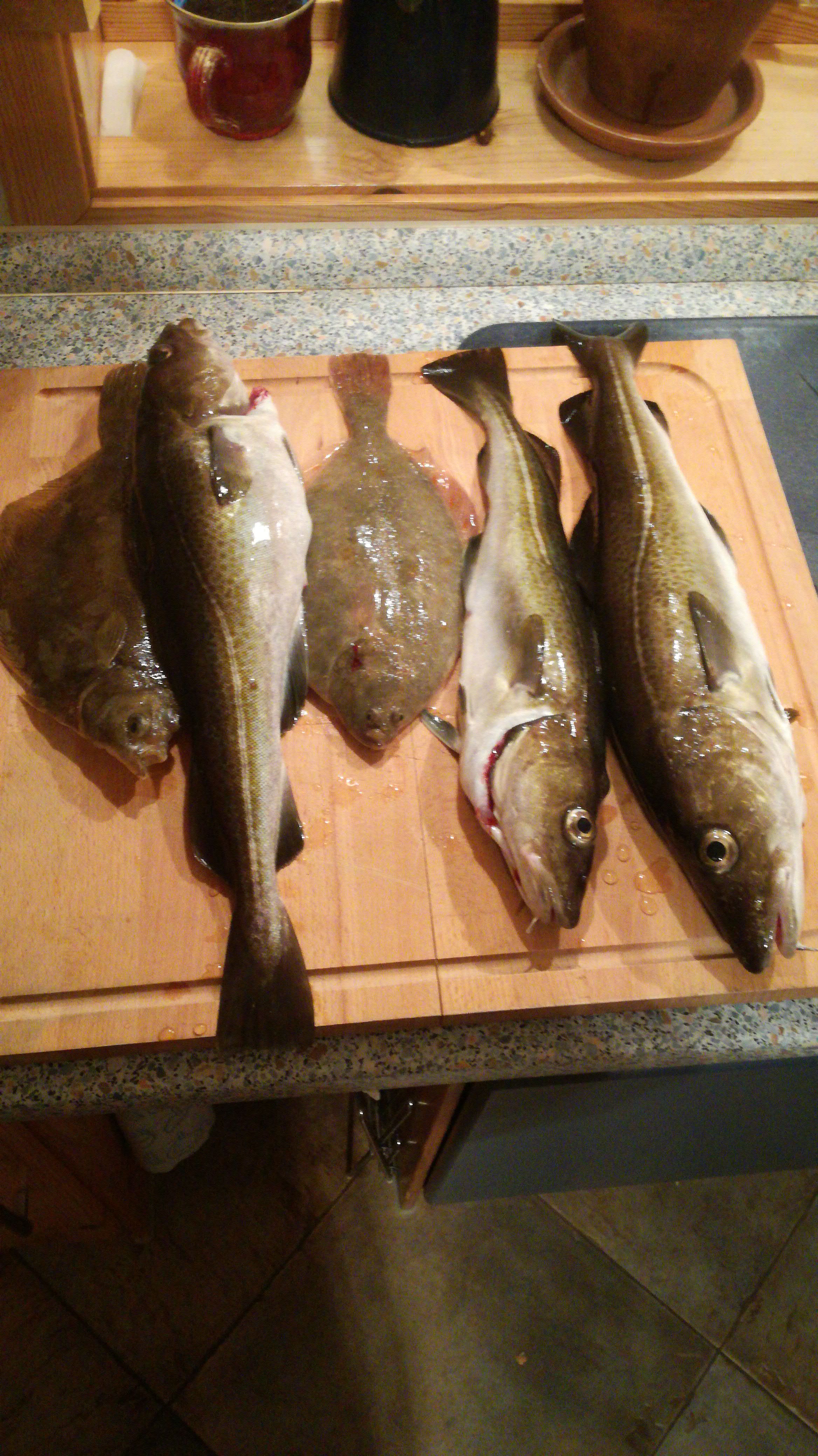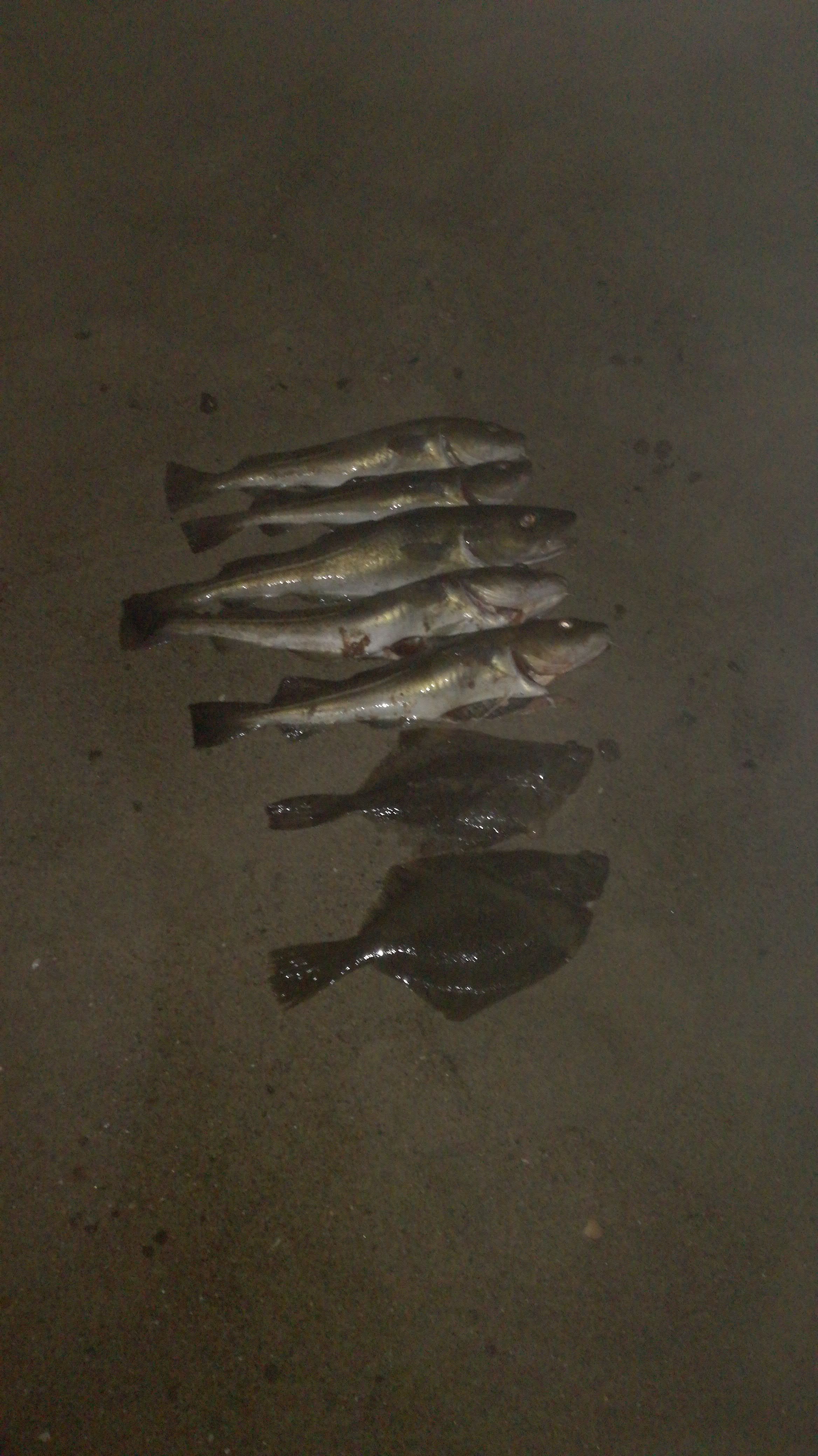 Trotz wenig Wellen, bissen eher die Dorsche, statt die Platten. Dorsche zwischen 40-45cm und Butt bei 30cm. Kein untermaßiger Dorsch dabei
