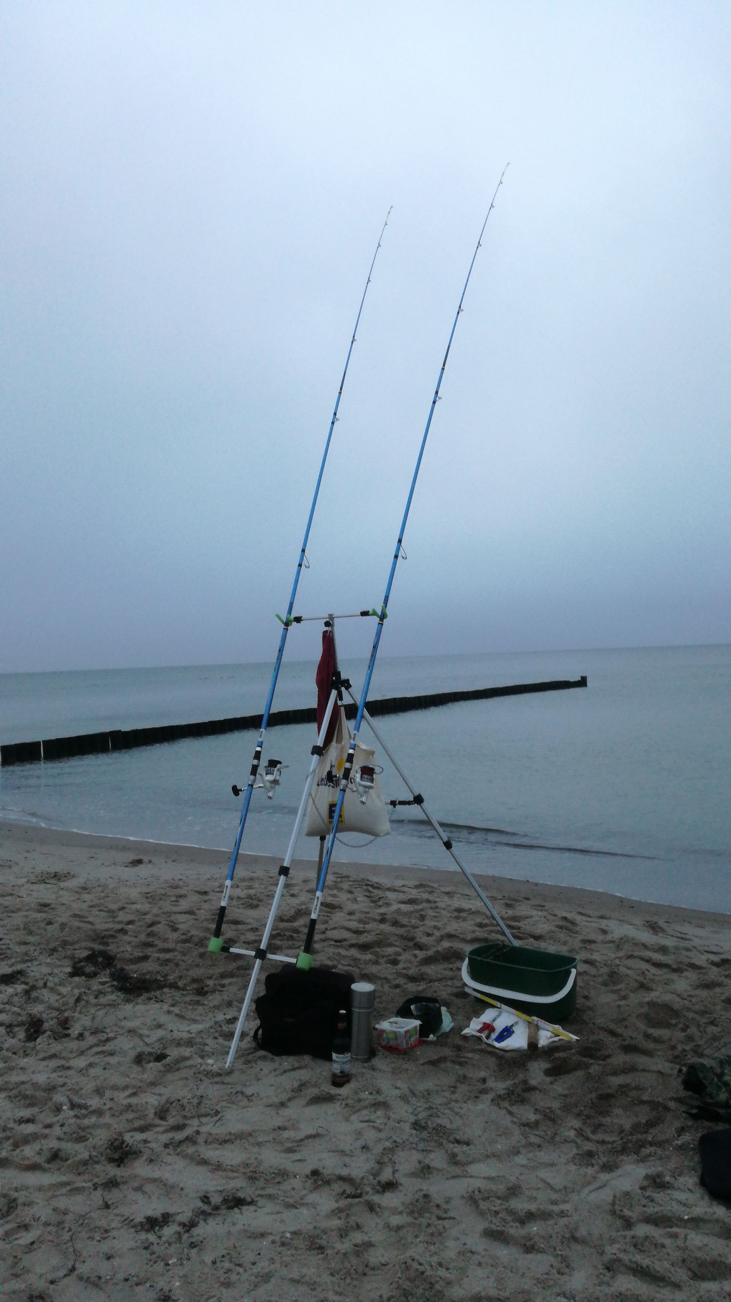 Zusammen mit meinem Schwager war ich heute 5 Stunden bei angenehmem Wetter am Strand, die Fische spielten mit und so konnten wir insgesamt 6 Dorsche (3 untermaßig und zurückgesetzt) von 30-50cm und 2 Platten mit 30cm und 32cm erbeuten.
