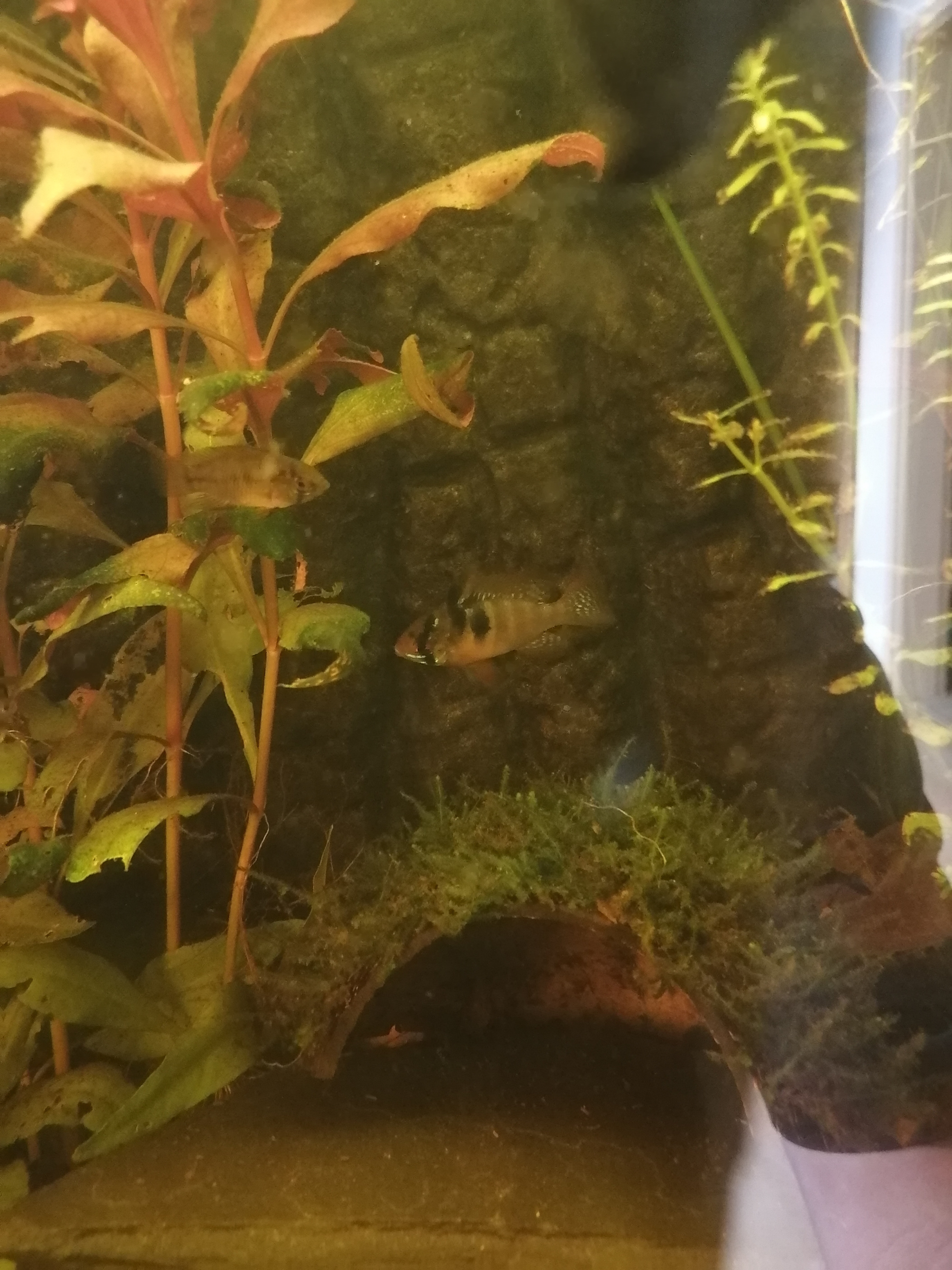Da meine Purpurprachtbarsche meine Borelli gekillt haben, ja ich habe es gesehen, bekam ich heute im Tausch für ein paar Nachzuchten von mir, ein Paar Schmetterlingsbuntbarsche. Ich hoffe die werden von den Purpurprachtbarschen in Ruhe gelassen, sind ja etwas größer und wenn mal die Zucht klappen sollte freut mich.