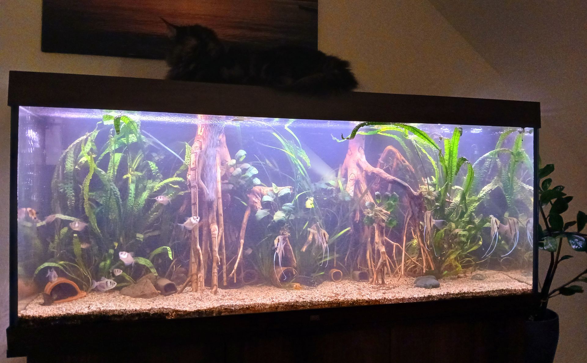 Ansonsten habe ich unser 270l Aquarium komplett neu aufgesetzt, jetzt mit Guppys, die findet meine Tochter total gut.
