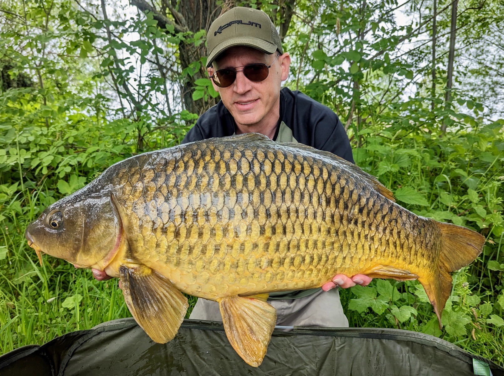 Eigentlich sollte es am vergangenen Wochenende ausschließlich auf Brassen gehen. Doch der Plan ging nicht ganz auf, da sie mit Laichen beschäftigt waren. Nachdem ich drei Schleien verhaftet hatte, haben wir Karpfen an der Oberfläche entdeckt. Allerdings waren sie nur dabei, sich zu sonnen und hatten wenig Interesse an meinem Schwimmbrot, das ich noch im Kofferraum hatte.