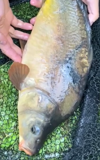 Hier noch der letzte Karpfen des gestrigen Tages. Ein kleiner, ca. 45cm groß. Ich hänge euch mal ein Foto von beiden Seiten des Fisches rein - vielleicht kann mir jemand sagen, woher diese Wunden stammen?