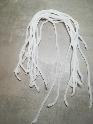 Als erstes nehmt ihr ein Behältnis es sollte schon etwas Größeres sein ich habe ein Plastik Badewanne genommen, da gibt man ca. 5 cm hoch Wasser rein anschließend das Spühlmittel nicht zuwenig das Wasser sollte sich ziemlich schmierig anfühlen, dann spritzt ihr die gewünschte menge an Würsten rein, die über nacht stehen lassen und am nächsten Tag dann gründlich unterm Wasserhahnen absühlen, dannach könnt ihr dann die gewünschen Längen mit einer Scherre abschneiden.