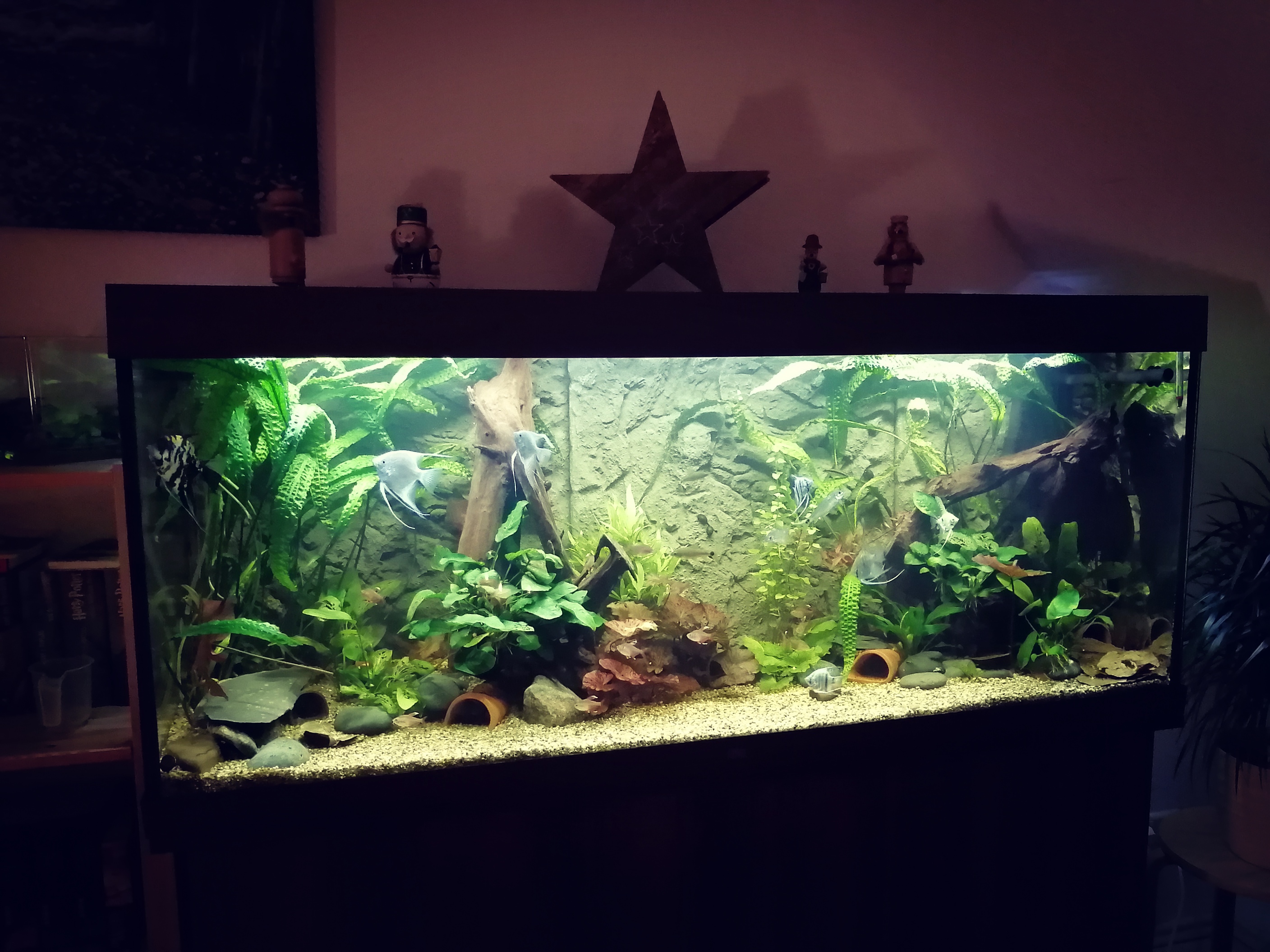 Kleines Update zu meinem 450l Aquarium, alles wächst und gedeiht prächtig. Algen gibt es keine, außer an den Scheiben, aber da machen die Stahlhelmschnecken gute Arbeit, so dass ich kaum putzen muss. Was die Vermehrung angeht, zeigen sich meine Fische sehr sehr faul, nichts in Aussicht leider.