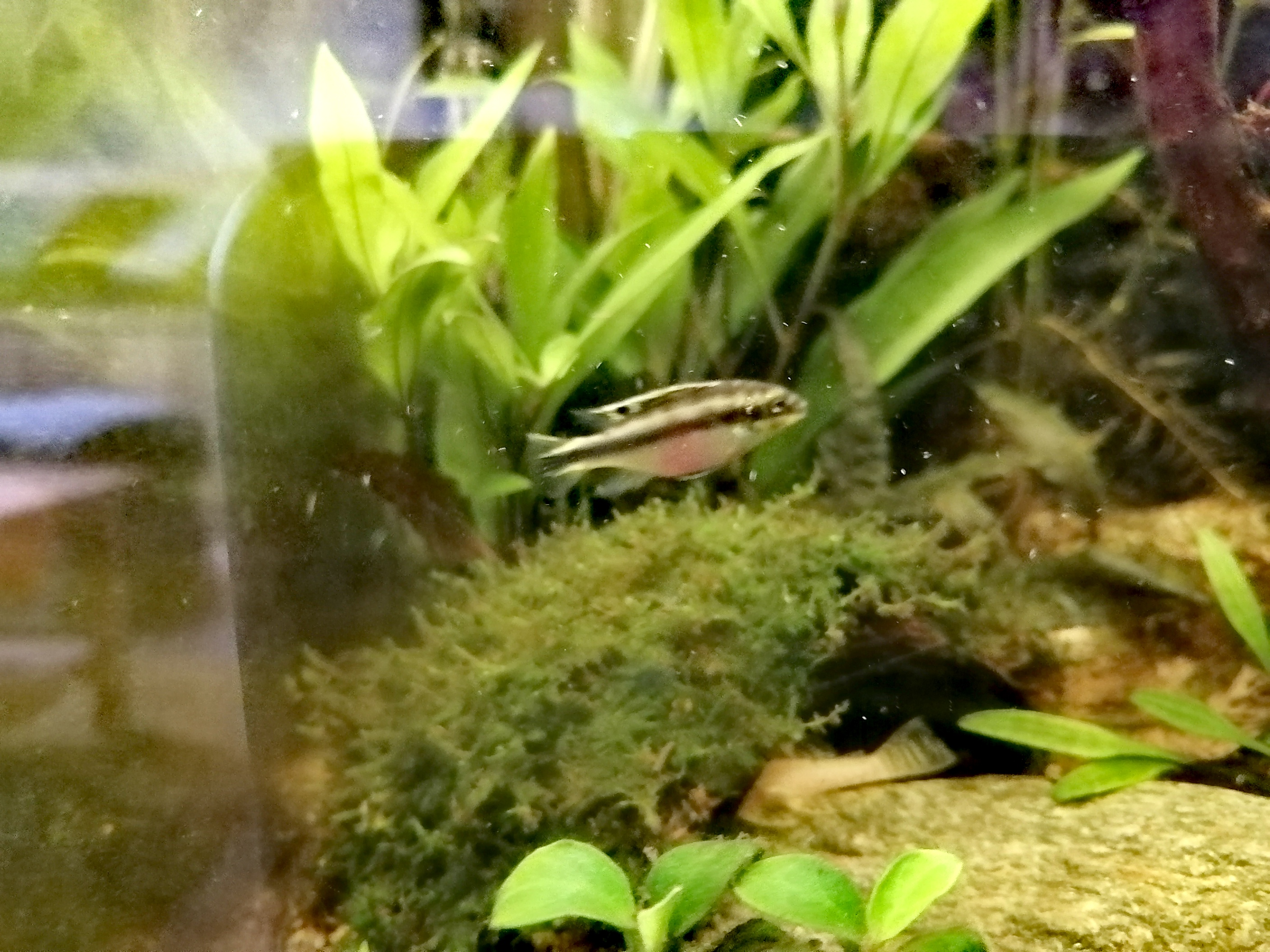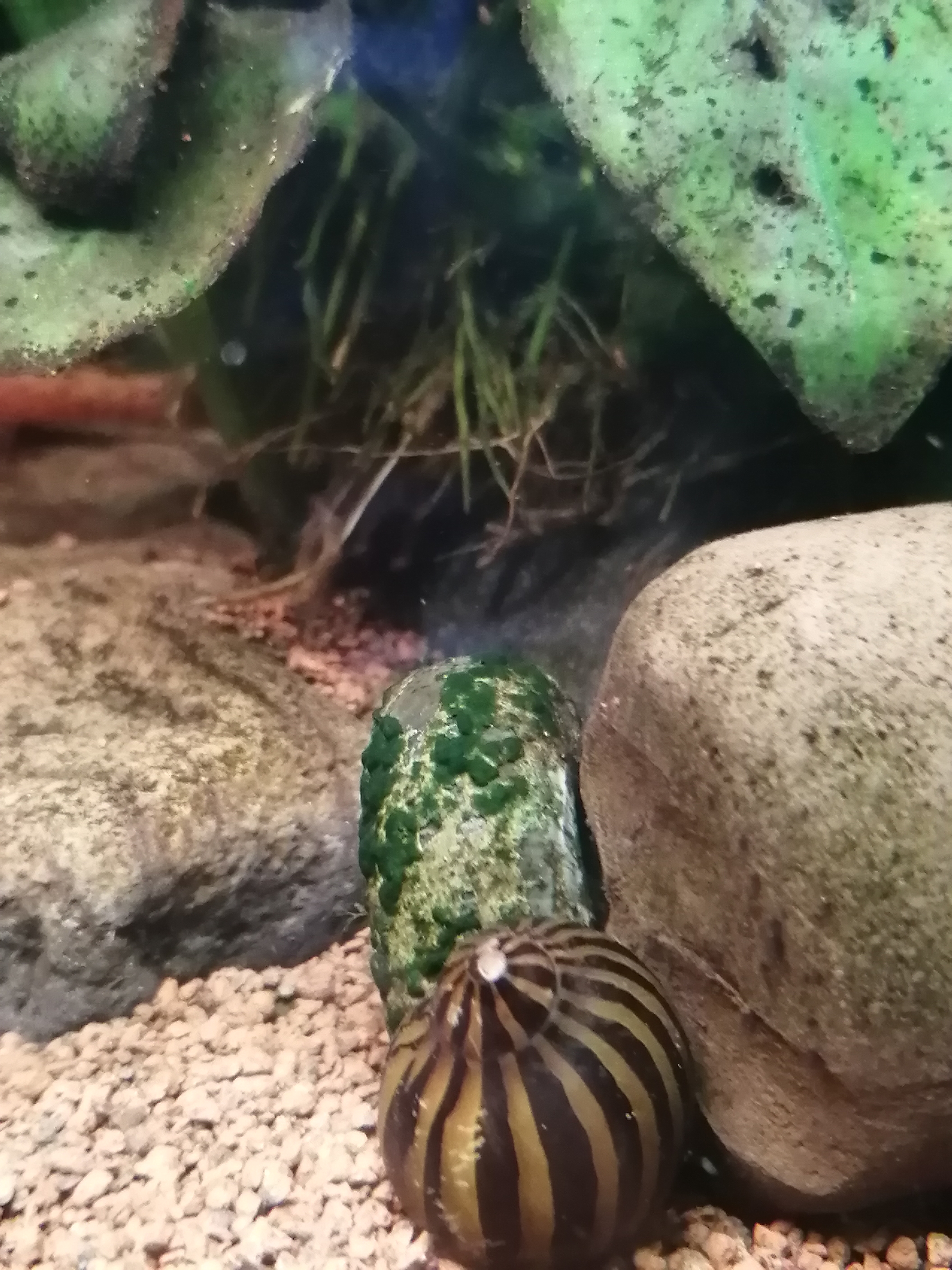 Einen hab ich noch. Heute habe ich mir das erste Mal Posthornschnecken gekauft und eben fällt mir auf, dass eine Schnecke einfach mal Moos aufm Panzer hat