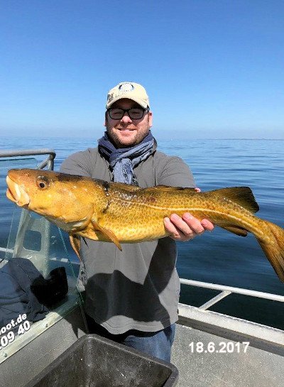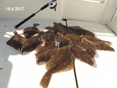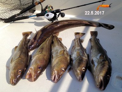 Fahre öfter mit meinem Boot von Fynshav (Dänemark) raus auf den kleinen Belt zum angeln. Meistens geht es auf Dorsch oder Plattfisch. Dazu verwende ich nur leichtes Gerät d.h. eine leichte Spinnrute oder auch eine feine Jiggingrute. Auf Dorsch wird mit Gummifischen von 8-12cm geangelt und für die Platten kommen Buttlöffel und Seeringelwürmer zum Einsatz. Wichtig ist eine dünne (0,12 - 0,15mm) geflochtene Schnur. Damit hat man direkten Kontakt zum Köder und spürt die Bisse deutlich um im richtigen Moment den Anhieb setzen zu können. Alle Bilder sind von diesem Jahr und sollen euch einen Eindruck verschaffen, was man hier mit der richtigen Ausrüstung so alles fangen kann.