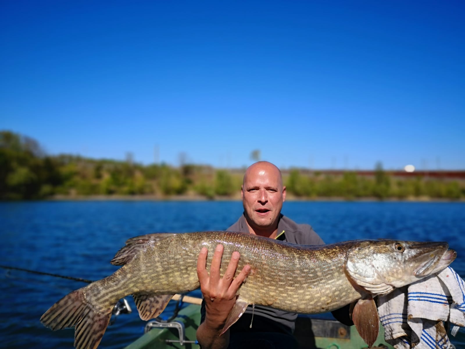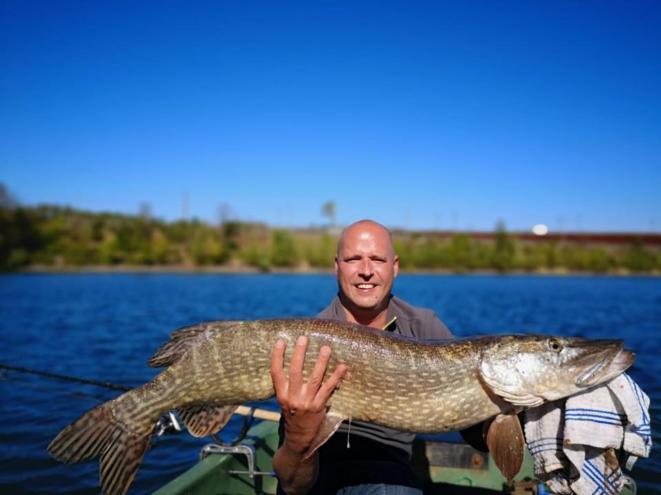 Ich war am 13.05.2019 das erste Mal nach der Schonzeit an meinem Vereinsgewässer auf Hecht schleppen. Es war ein wunderschöner Tag! Die Temperatur lag bei ca. 18 Grad, leichter Wind von NW, sehr sonnig und ruhiges klares Wasser. Nach ca. 5 Stunden war es dann soweit. Ich konnte meinen ersten Meterhecht des Jahres 2019 fangen. Sie war ca. 107cm lang, ging auf einen 12cm Wobbler, vier Meter vom Ufer entfernt in einer Tiefe von etwa genauso vielen Metern. Ich habe mich sehr gefreut und die Dame nach einer kurzen Zeit wieder ins Wasser zurück gesetzt.