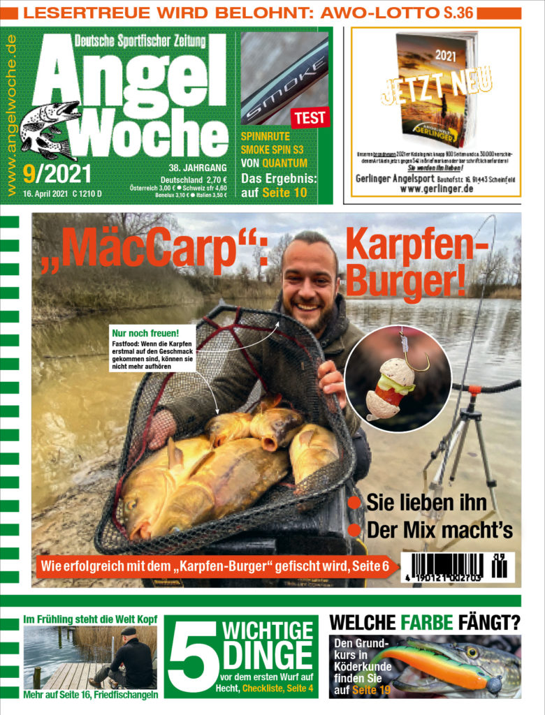 Die Karpfen lieben ihn, den Karpfen-Burger. Boilie ist gut, Pellet ist gut, doch dieser „Burger“ fängt besser! Woraus Sie diesen speziellen Kombinationsköder zusammensetzten und wie Sie erfolgreich mit ihm auf Karpfen fischen, erfahren Sie im Foto-Report der aktuellen AngelWoche 09! Diese Köder räumen richtig ab!
