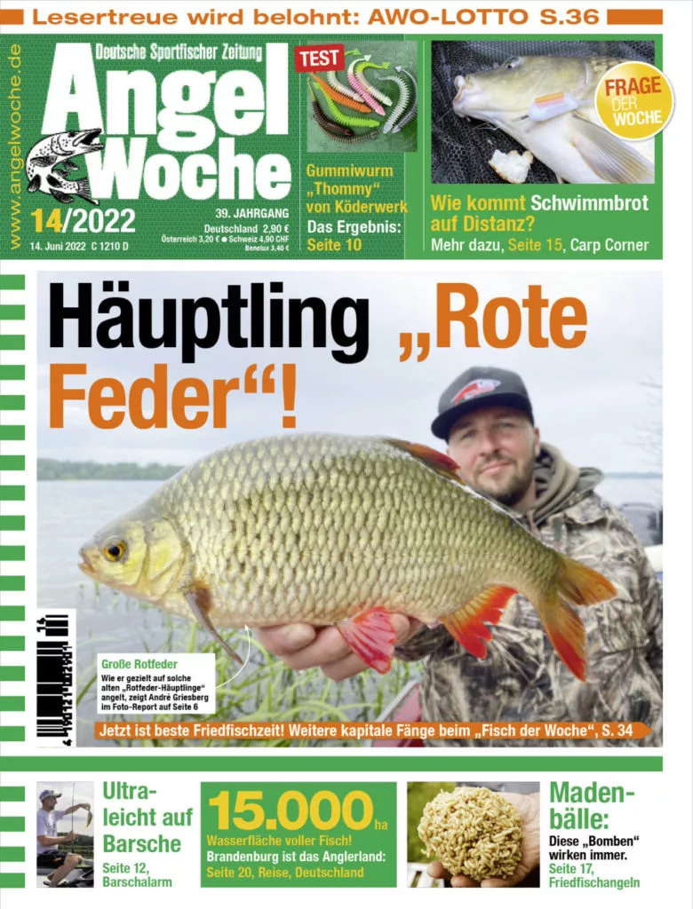 Mit ihren fast leuchtend roten Flossen ist die Rotfeder für viele einer der schönsten Fische unserer Gewässer. Das gezielte Angeln auf diesen kleinen Fisch ist zwar nicht sehr gängig, aber über ein große Rotfeder freuen Sie sich doch bestimmt auch, oder? Vergleichbar mit dem Barsch sind diese Fische zum größten Teil aber eher klein und große Exemplare sind dementsprechend wertvoll. In der aktuellen AngelWoche 14 lesen Sie, wie André Griesberg gezielt auf große Rotfedern fischt.