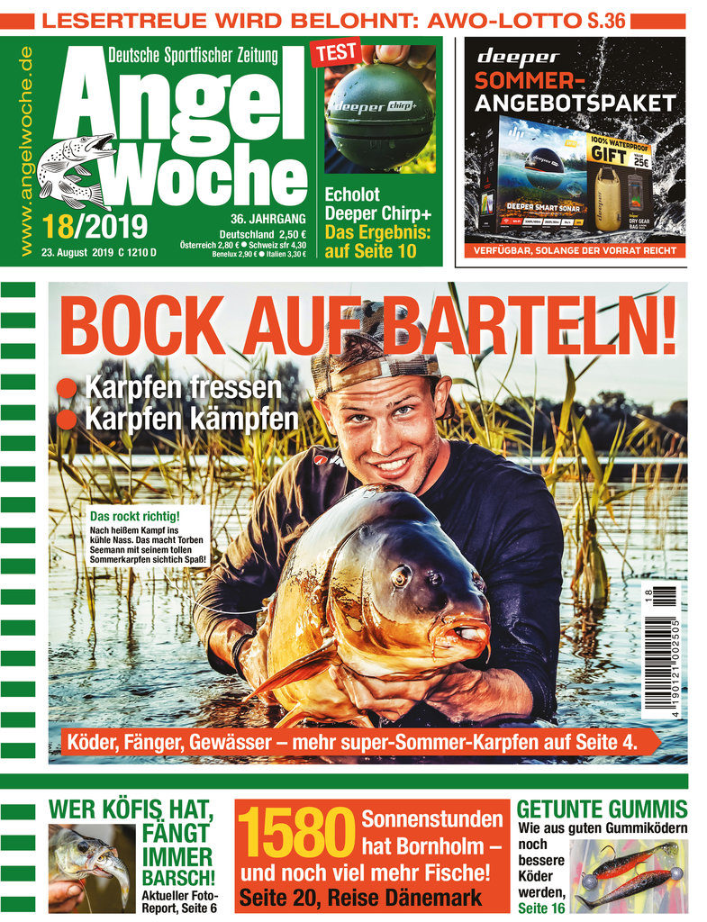 AngelWoche ist die aktuellste und meist verkaufte Angelzeitung auf dem deutschen Markt. News aus der Industrie, aktuelles von den Angelgewässern, reich bebilderte, kurz und verständlich gehaltene Artikel, verbunden mit einer großen Themenvielfalt charakterisieren die AngelWoche.